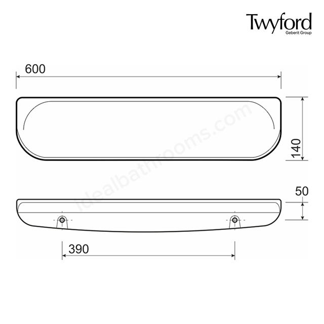 This Twyford Ceramic 600mm Wide Wall Shelf is designed with practical functionality, offering a sleek, space-saving storage solution.
