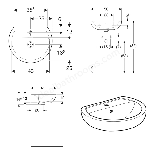 With a 500mm width and 1 centered tap hole, it provides ample washing space while remaining space efficient, ideal for smaller bathrooms or guest washrooms.