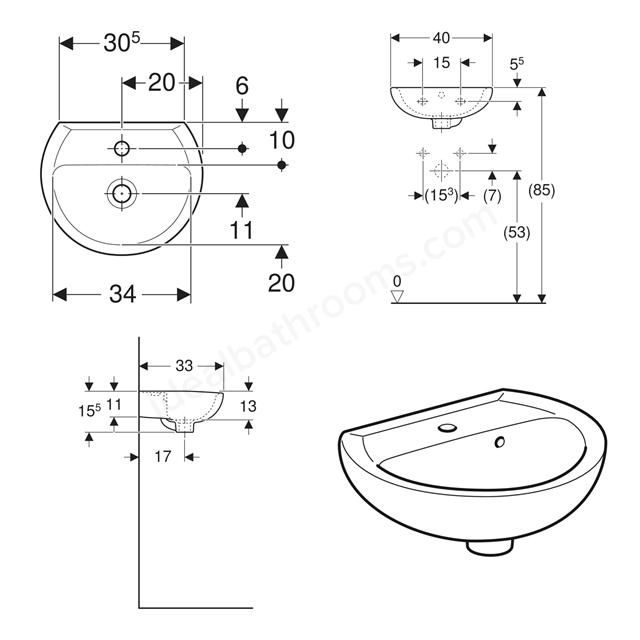 This Twyford Alcona 400mmW Basin is a smart choice for cloakrooms, small bathrooms, and ensuites where space is limited but style matters.