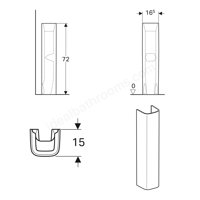 Measuring 720mm high, 165mm wide and 150mm deep, the square profile provides stable basin support while maintaining a compact footprint, making it ideal for bathrooms & cloakrooms.