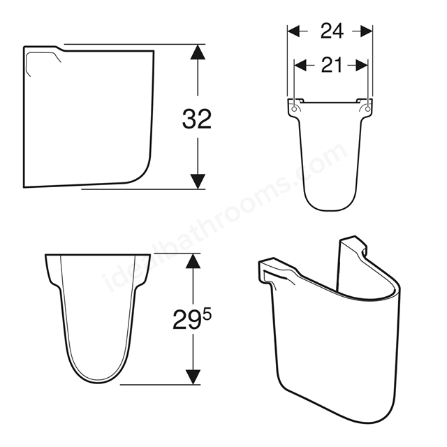 With dimensions of 240mm width and 295mm height, this semi-pedestal creates a floating basin look while keeping pipework hidden.