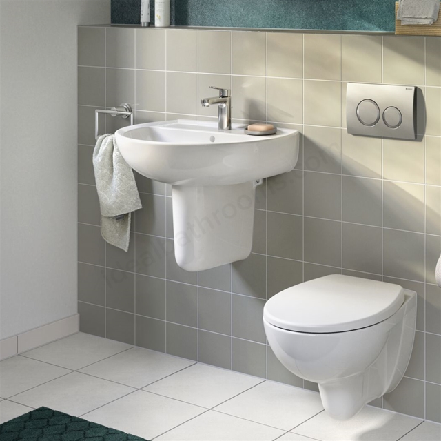 Compact sizing makes it suitable for smaller bathrooms and cloakrooms while maintaining a balanced basin appearance.