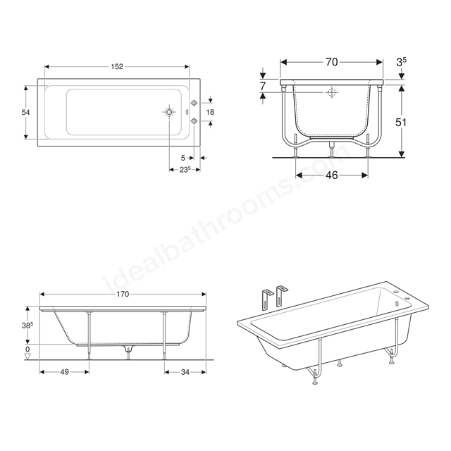This Twyford Aspect is a 1700mmL x 700mmW crafted single-ended acrylic bath, designed for both comfort and long-lasting performance, making it ideal for contemporary residential and hotel bathrooms.
