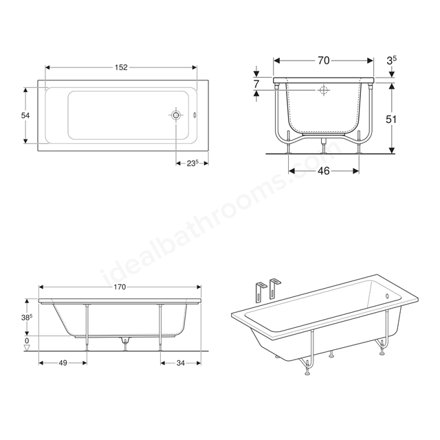 This Twyford Aspect is a 1700mmL x 750mmW crafted single-ended acrylic bath, designed for both comfort and long-lasting performance, making it ideal for contemporary residential and hotel bathrooms.