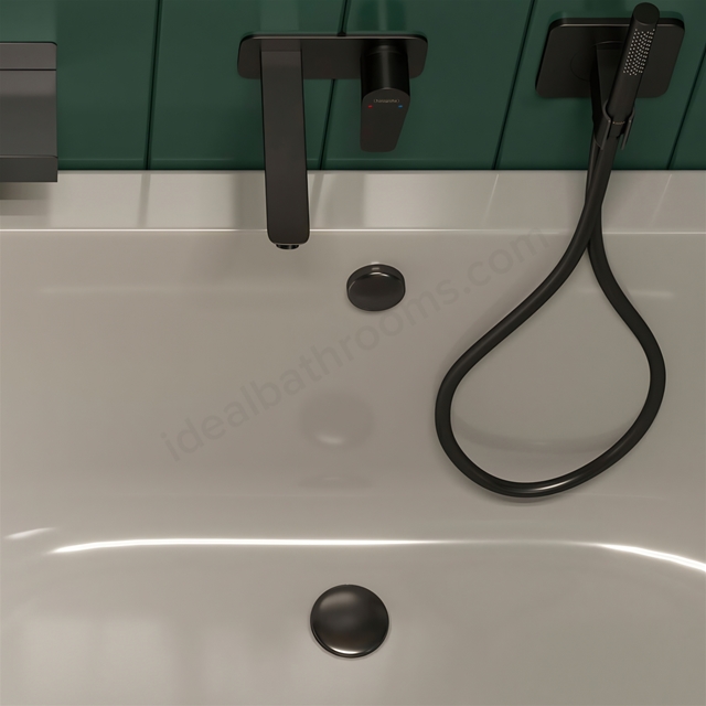 Finished in a matt black split design, it provides water control via an actuator rosette and matching waste plug.
