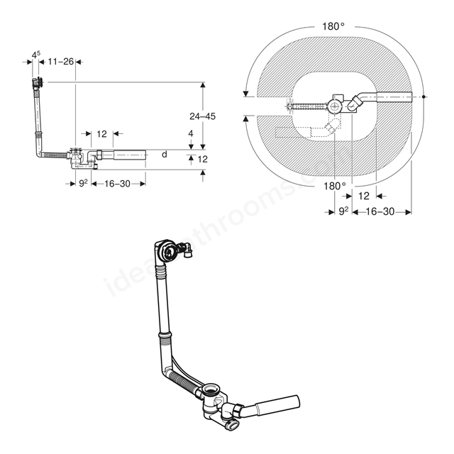 Suitable for steel, plastic, and cast-iron baths, it has an integrated inlet for fast filling, a turn handle and a 50mm water seal trap.