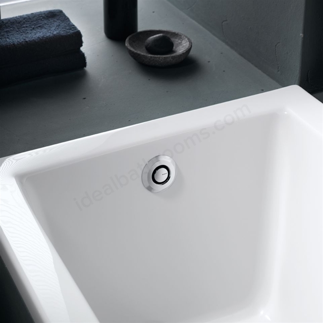 Featuring intuitive push-button actuation, the waste opens and closes with a simple press, sitting flush with the bath surface, eliminating traditional plugs or chains.