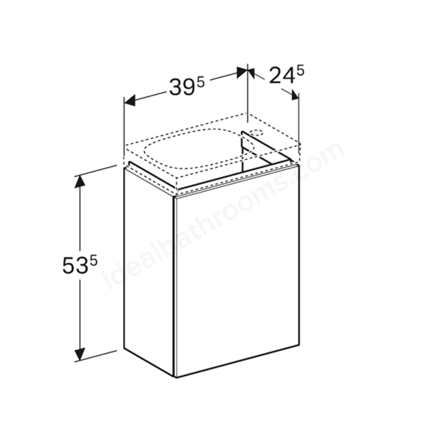 Geberit Acanto cabinet for handrinse basin; with one door: B=39.5cm; high-gloss coated / white; shiny glass / white