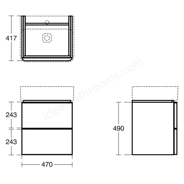 Ideal Standard Strada II 500mm wall hung washbasin unit with 2 drawers; matt anthracite