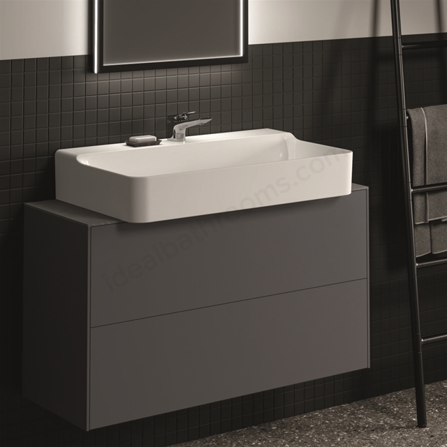 Atelier Conca 100cm wall hung short projection washbasin unit with 2 drawers; no worktop; matt anthracite