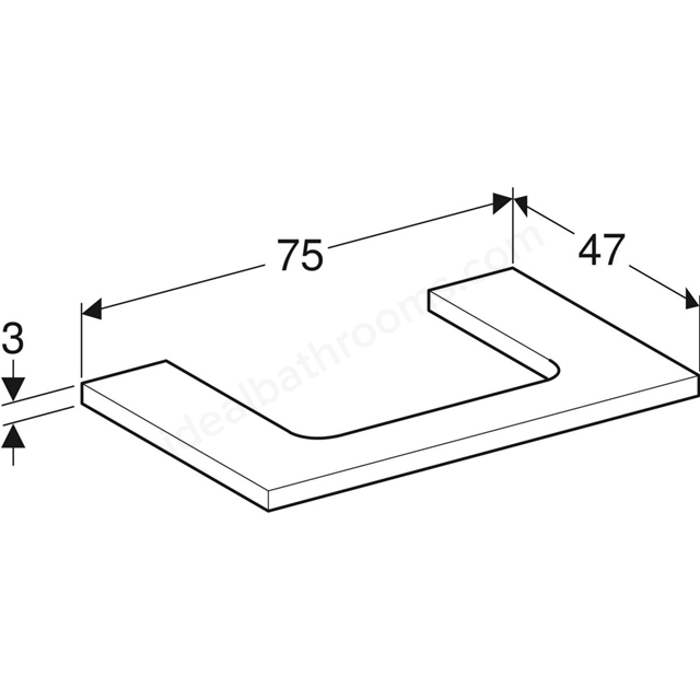 Geberit ONE washtop; central cut-out; for lay-on washbasin: W=75cm; H=3cm; D=47cm; greige / matt coated