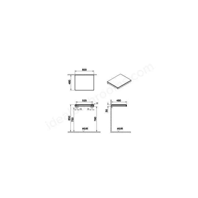 VitrA Options 600mm Wall Hung Countertop - Matt Anthracite