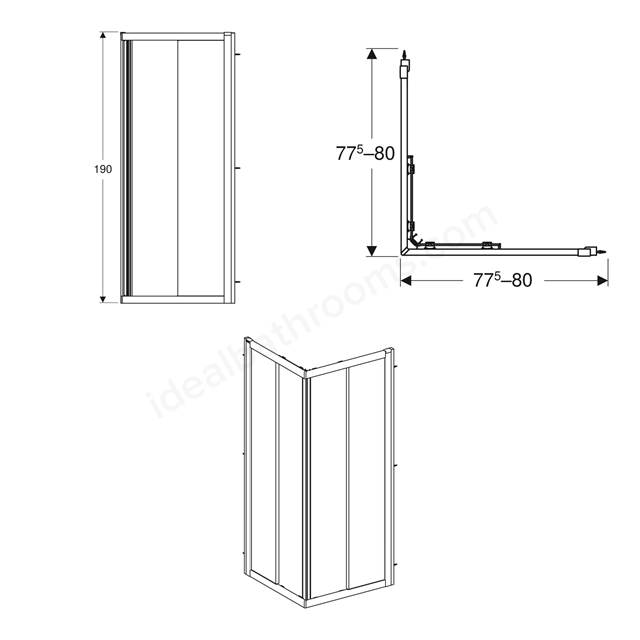 This Geberit GEO Square 775-800mmW Shower Enclosure is designed for corner installation to maximise usable space in compact, modern bathrooms, offering a smooth, space-saving sliding door for easy access.