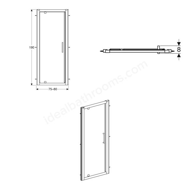 This Geberit GEO 750-800mmW Pivot Shower Door is a reliable, beautifully finished shower door designed for everyday showering.