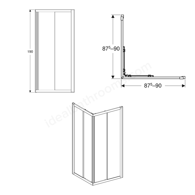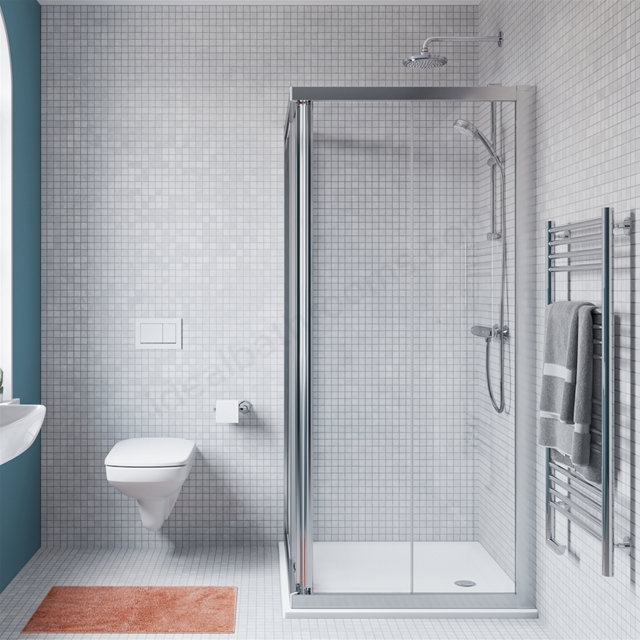 This Geberit GEO Square 875-900mmW Shower Enclosure is designed for corner installation to maximise usable space in compact, modern bathrooms, offering a smooth, space-saving sliding door for easy access.