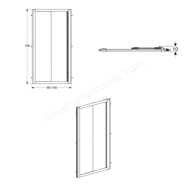 This Geberit GEO Sliding Shower Door 950-1000mmW is designed for installation in a recess (niche) or can be paired with a GEO side panel.