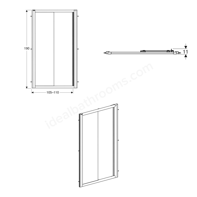 This Geberit GEO Sliding Shower Door 1050-1100mmW is designed for installation in a recess (niche) or can be paired with a GEO side panel.