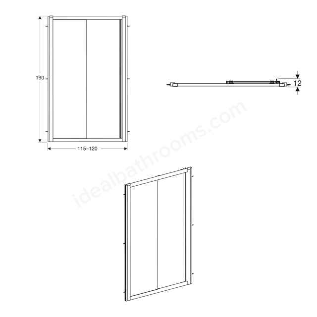 This Geberit GEO Sliding Shower Door 1150-1200mmW is designed for installation in a recess (niche) or can be paired with a GEO side panel.