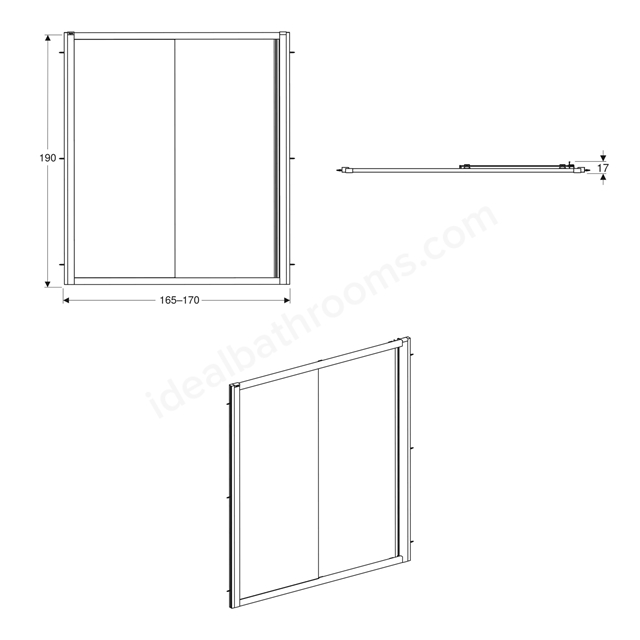 This Geberit GEO Sliding Shower Door 1650-1700mmW is designed for installation in a recess (niche) or can be paired with a GEO side panel.
