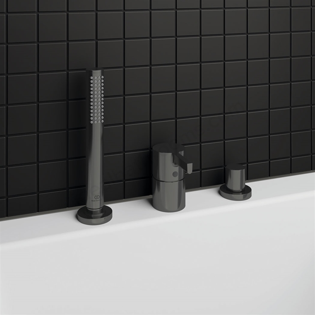 Atelier Joy 3 Tap Hole Bath Shower Mixer w/ Diverter & Shower Set - Magnetic Grey