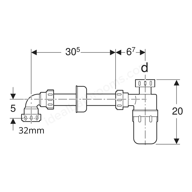 This Geberit bottle trap is a plastic waste trap for washbasins with 32mmØ outlets.