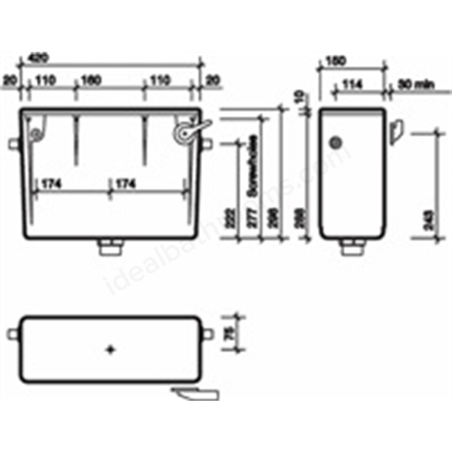 This Twyford Sola Concealed 4 or 6L Cistern with Lever (CX9560XX) is a concealed plastic toilet cistern designed for installation behind service walls, duct panels, or furniture units.