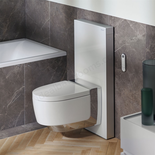 This multiple award-winning 101cm Geberit Monolith Plus for wall hung WCs is multi-talented; the integrated odour extraction unit; intelligent sensor technology and an especially convenient flush actuation are only three of its many features.