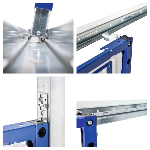 Used widely in pre-wall installation systems, they serve as the mounting framework for Geberit Toilet Frames, Washbasin Frames, and other wall-hung elements (Urinals, Bidets, Showers, Less-Abled Wall-Hung Toilets).