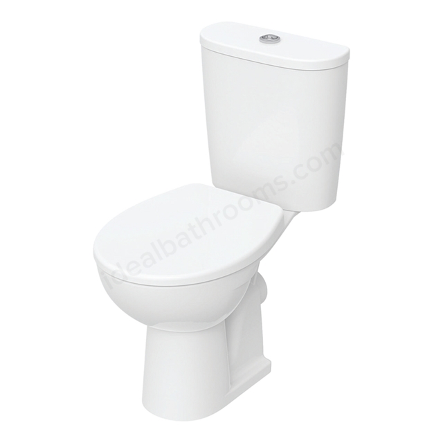 With its dual flush cistern this close-coupled toilet provides efficient water use and excellent performance. The classic, rounded shape complements any bathroom style, while the robust Duroplast seat ensures comfort and longevity.