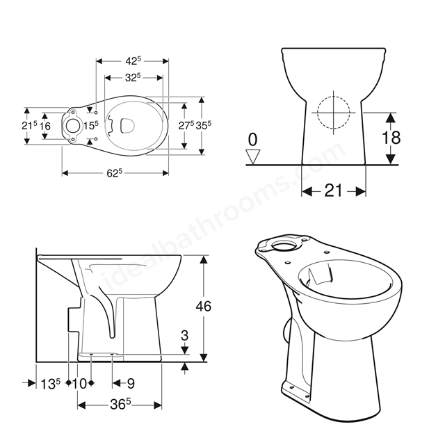 Featuring Rimless technology for superior hygiene and a raised seat height for improved accessibility, this floor-standing toilet is perfect for both residential and commercial spaces.