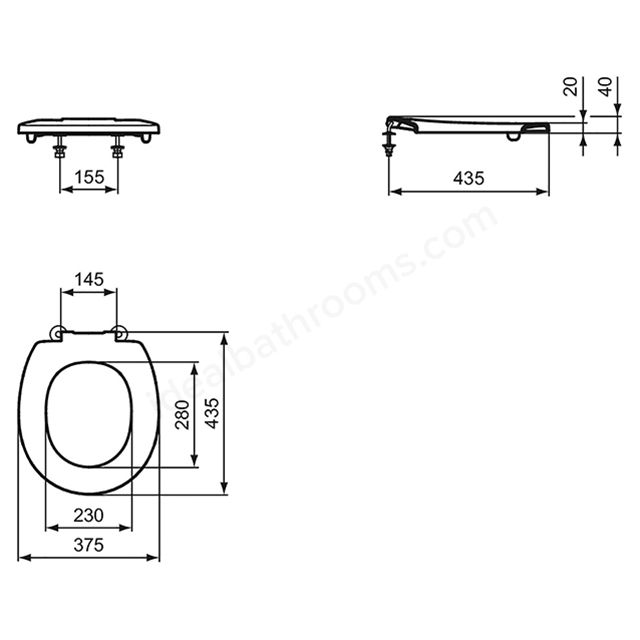 The Armitage Shanks Contour 21 toilet seat only is made from plastic conforming to BS1254 and has top fix hinges, reataining buffers and standard close.